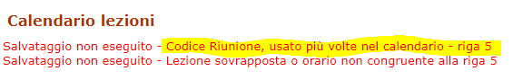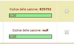 Procedendo correttamente, si può invece generare la lezione. Ecco un dettaglio del nuovo inserimento, in ci compare il Codice della Lezione, che viene generato solo al momento della corretta creazione della lezione.